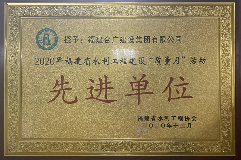 • 福建合廣建設(shè)集團有限公司2020年費水利工程質(zhì)量月榮譽證書