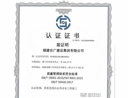 福建合廣建設(shè)集團有限公司,注冊資本5188萬元人民幣,公司位于廈門市同安區(qū)鳳山一里151-17號。本公司成立于2013年,公司具備市政公用工程、水利水電工程、房屋建筑工程、公路工程、園林綠化等多專業(yè)施工資質(zhì)。企業(yè)從業(yè)人員100多人,各類專業(yè)技術(shù)人員70多人,其中高級職稱8人,中級職稱40多人,一級建造師6人,二級建造師15多人。
